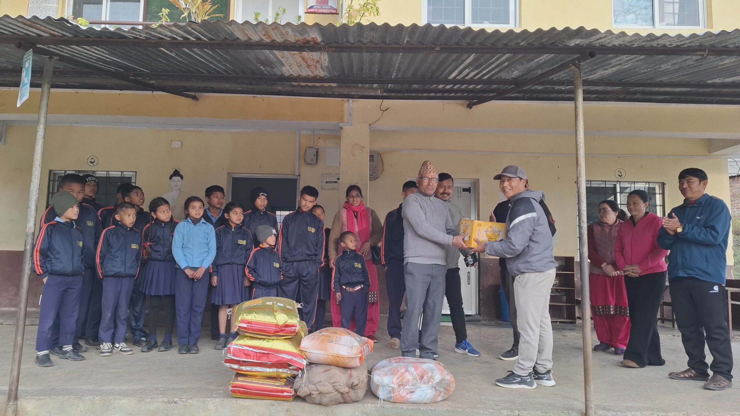 आउँदै गरेको क्रिसमसको पावन अवसर पारेर सो चर्चका प्रमुख तेज बरामले विद्यालयका प्रधानाध्यापक भार्गवबाबु पाण्डेलाई सो खाद्यान्न सामग्री हस्तान्तरण गरेका हुन् । चामल, नून, तेल, आलु लगायतका तरकारी हस्तान्तरण गरेका थिए ।